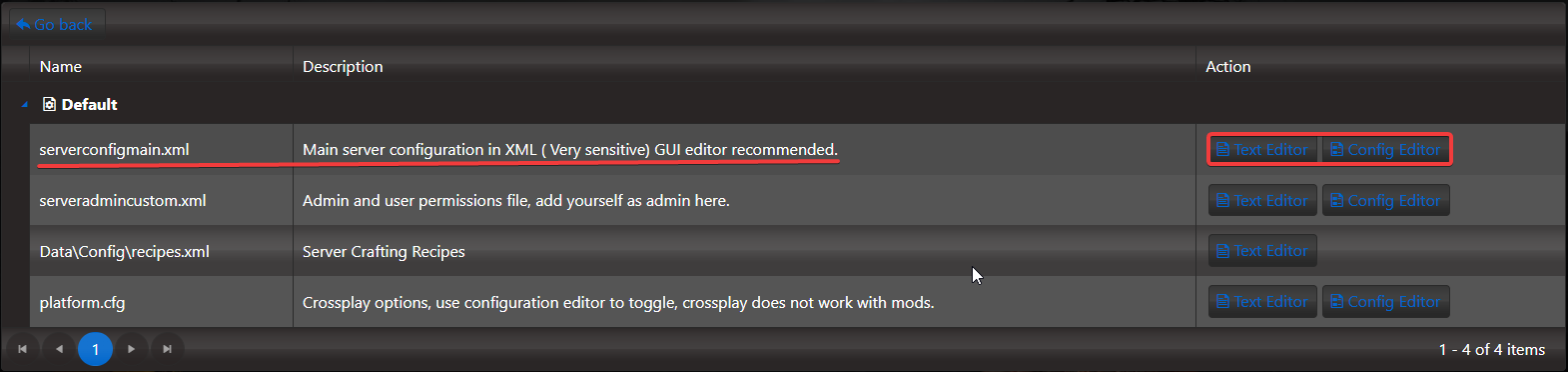 4. On the Configuration Files, look for serverconfigmain file and you can click the both Text and Config Editor.