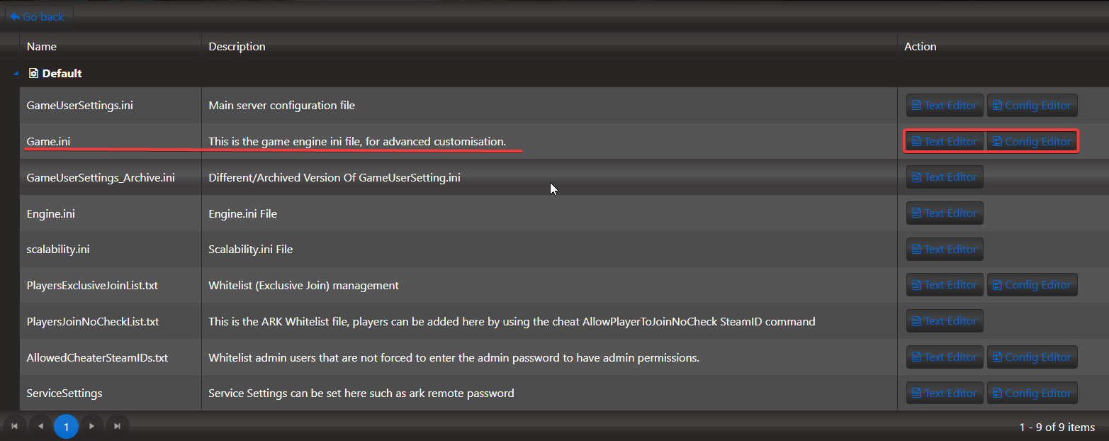 4. On the Configuration Files, look for Gameini file and click the Text Editor.