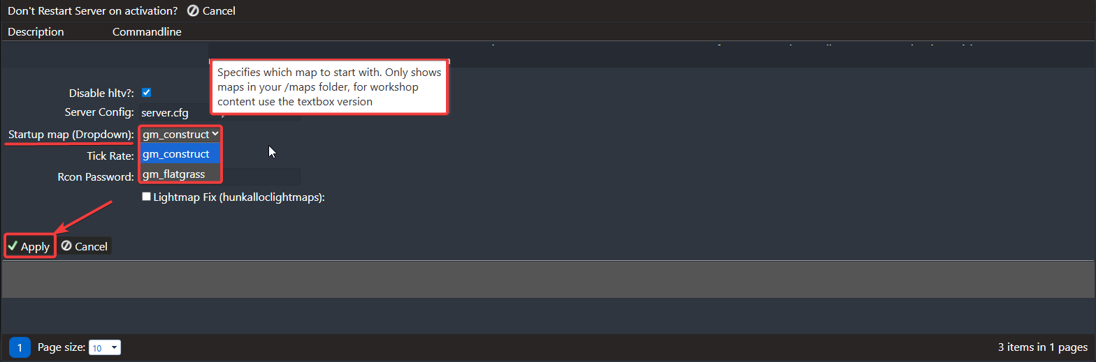 7. Select your commandline you want to use, in the map dropdown box your map will now appear,